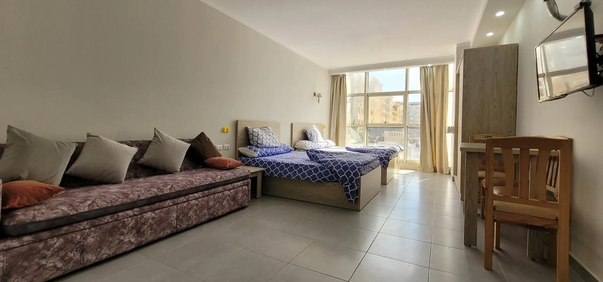 The apartment also features an equipped kitchen with facilities. A425 Sunny Sands, Seaview Holiday Chalet, Free Wifi is 0.6 miles away from Hurghada International airport.